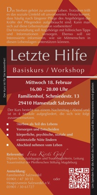 Es ist unser Auftrag und unser wichtigstes Anliegen, den Menschen den Hospizgedanken nahe zu bringen ganz in dem Sinne „Wenn der Mensch den Menschen braucht“ und bei Bedarf hilfreich zur Seite zu stehen. Unsere ehrenamtlichen Begleiterinnen und Begleiter bilden sich zur Erfüllung dieser menschlichen Aufgabe ständig fort.